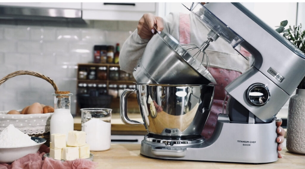 H Titanium Chef Baker της Kenwood διαθέτει ενσωματωμένη ζυγαριά για να ζυγίζουμε τα υλικά καθώς τα προσθέτουμε στον κάδο. Ακόμη, δυο ανοξείδωτους κάδους ανάδευσης (5L + 3,5L) που αποθηκεύεται ο ένας μέσα στον άλλο για εξοικονόμηση χώρου. Επίσης, ισχυρό ψηφιακό μοτέρ 1200W με 10 ταχύτητες, λειτουργία pulse και αναδίπλωσης. Μέσα στην συσκευασία περιλαμβάνονται 4 ανοξείδωτοι για άριστα αποτελέσματα ανα συνταγή και γυάλινο μπλέντερ ενώ υπάρχουν ακόμα 20 διαθέσιμα εξαρτήματα για ακόμη περισσότερες λειτουργίες. Oλα αυτά και πολλά άλλα τον καθιστούν τον καλύτερο βοηθό στην κουζίνα μας.