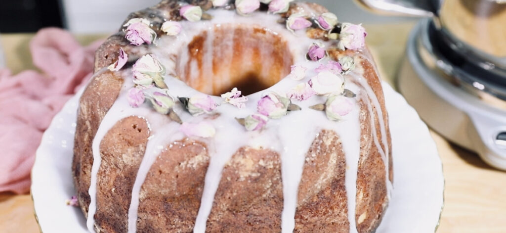 Μνήμη των παιδικών μου χρόνων είναι η μυρωδιά του κέικ που ψήνεται στο φούρνο. Κάθε φορά που φτιάχνω κέικ θυμάμαι όταν ήμουν παιδί που η μαμα με έβαζε πάνω στον πάγκο της κουζίνας για να ρίχνω το αλεύρι και τέλος να κουταλίζω το μείγμα που έμεινε κάτω κάτω στο μπόλ. Σήμερα ετοιμάζω κέικ με άρωμα τριαντάφυλλο και γλάσο μαστίχας. Στην κουζίνα βρίσκομαι με τον καλύτερο βοηθό που μπορεί να κάνει τα πάντα, την νέα μου κουζινομηχανή Titanium Chef Baker της Kenwood.